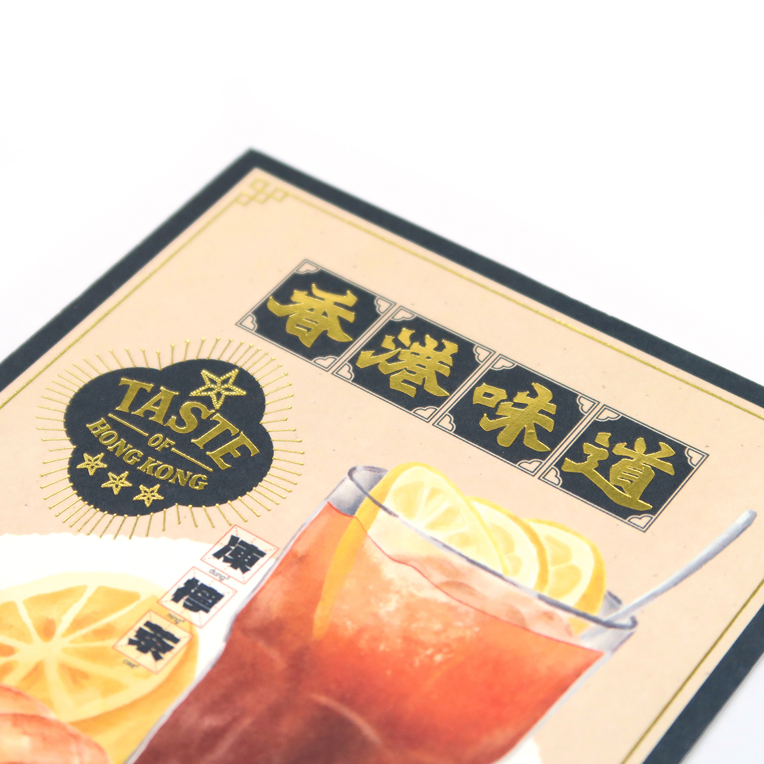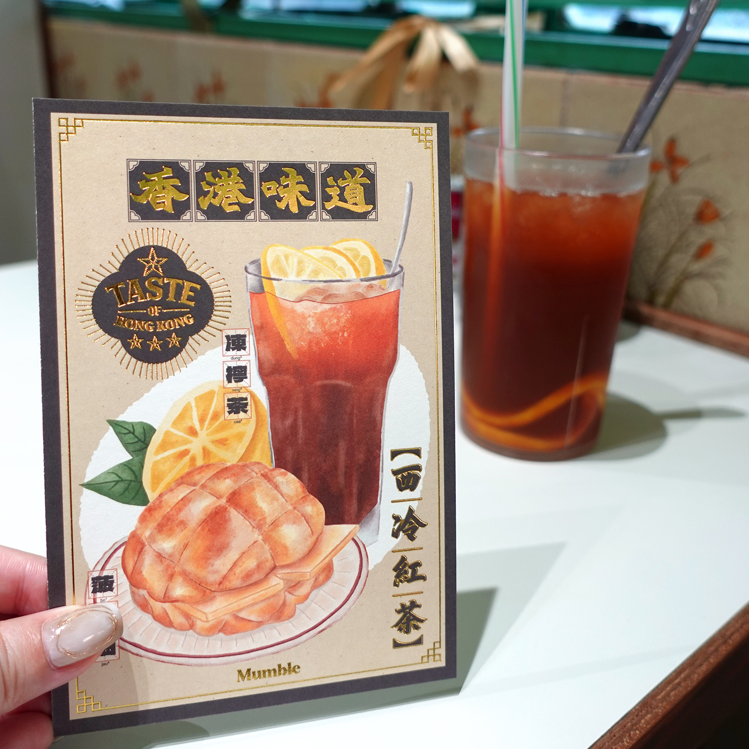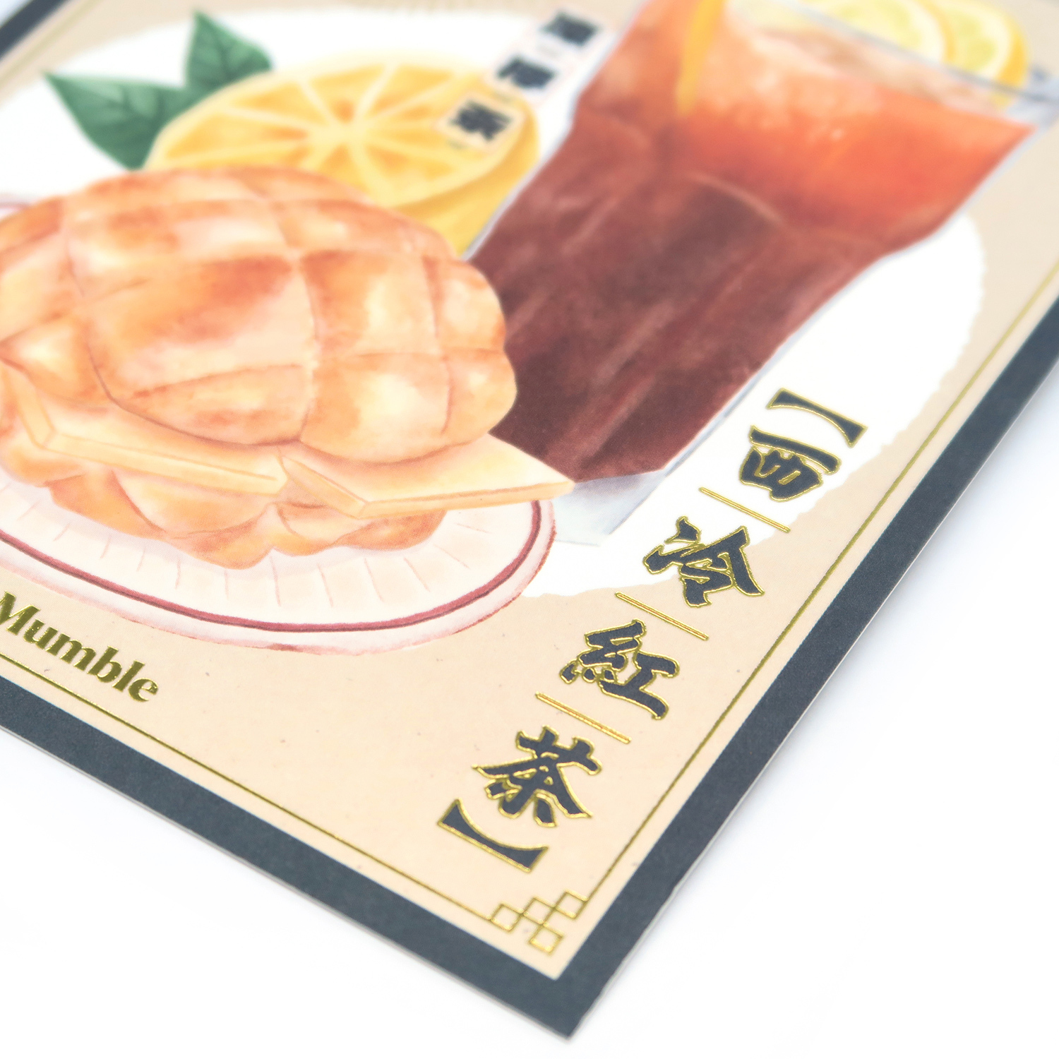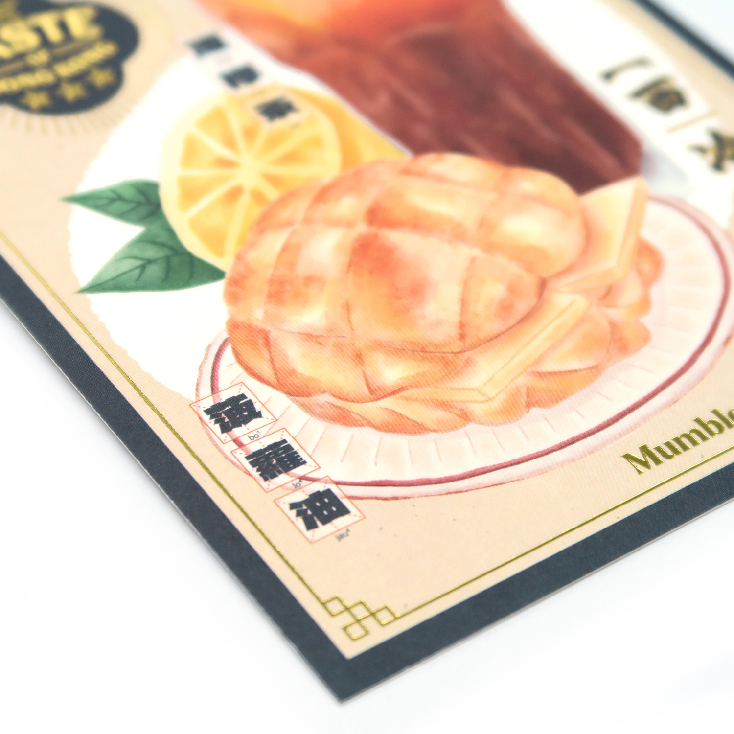 Mumble原創設計香港味道系列明信片,帶你品味地道的香港美食文化。明信片展示了一杯清涼的凍檸茶和一個香氣四溢的菠蘿油,這對香港早餐的經典組合。這些明信片特別採用燙金印刷及厚實的紙張增加質感,將香港的獨特美食帶到你的手中,讓你能夠分享香港的味道和文化。不論是作為紀念品,送禮或自己珍藏,這些明信片都是展現香港獨特風味的完美選擇。商品尺寸:約14.8×10cm