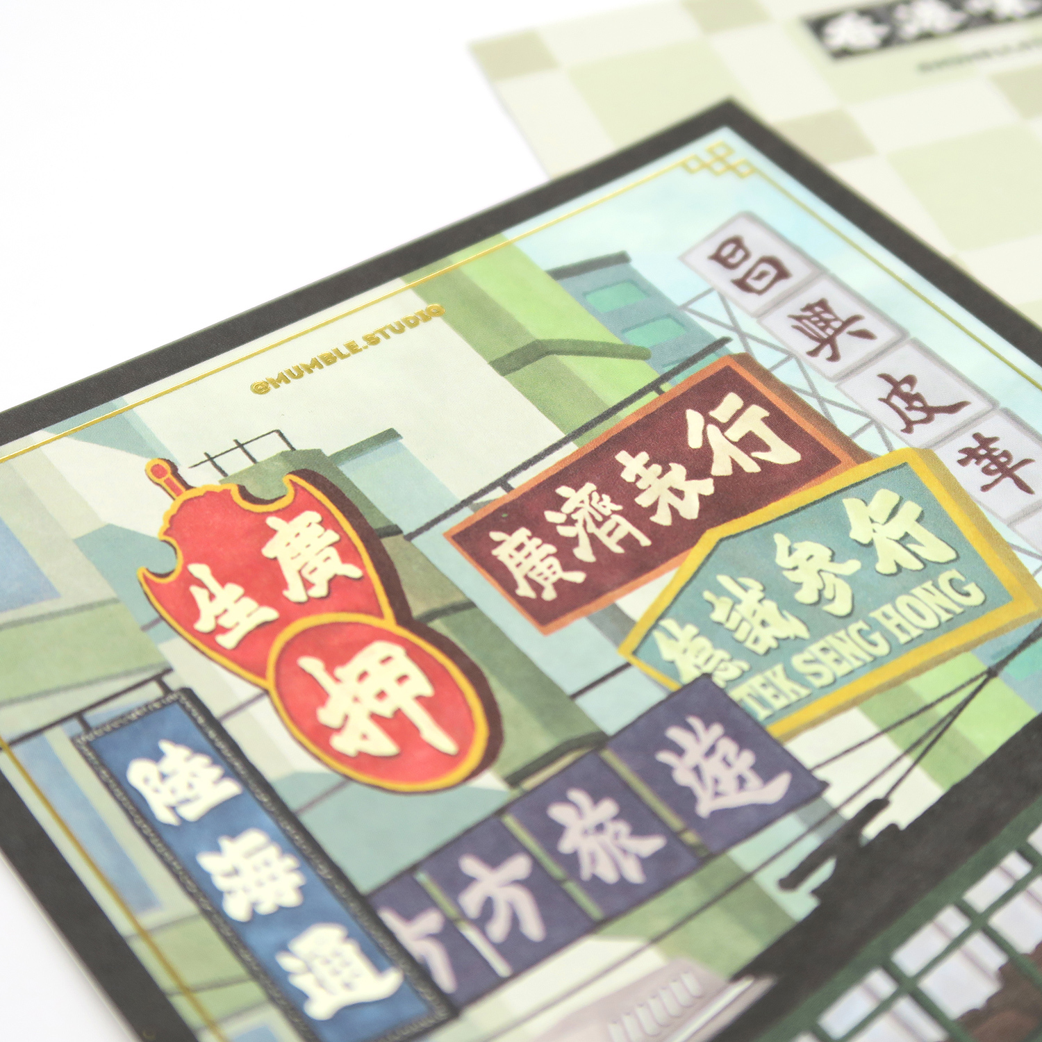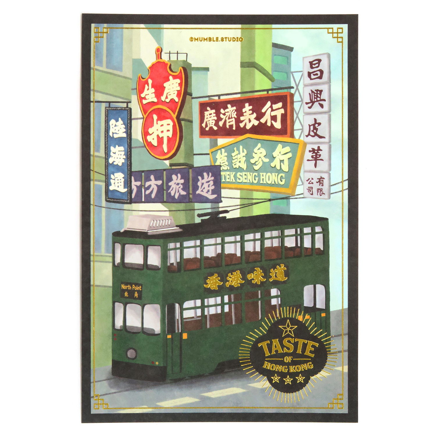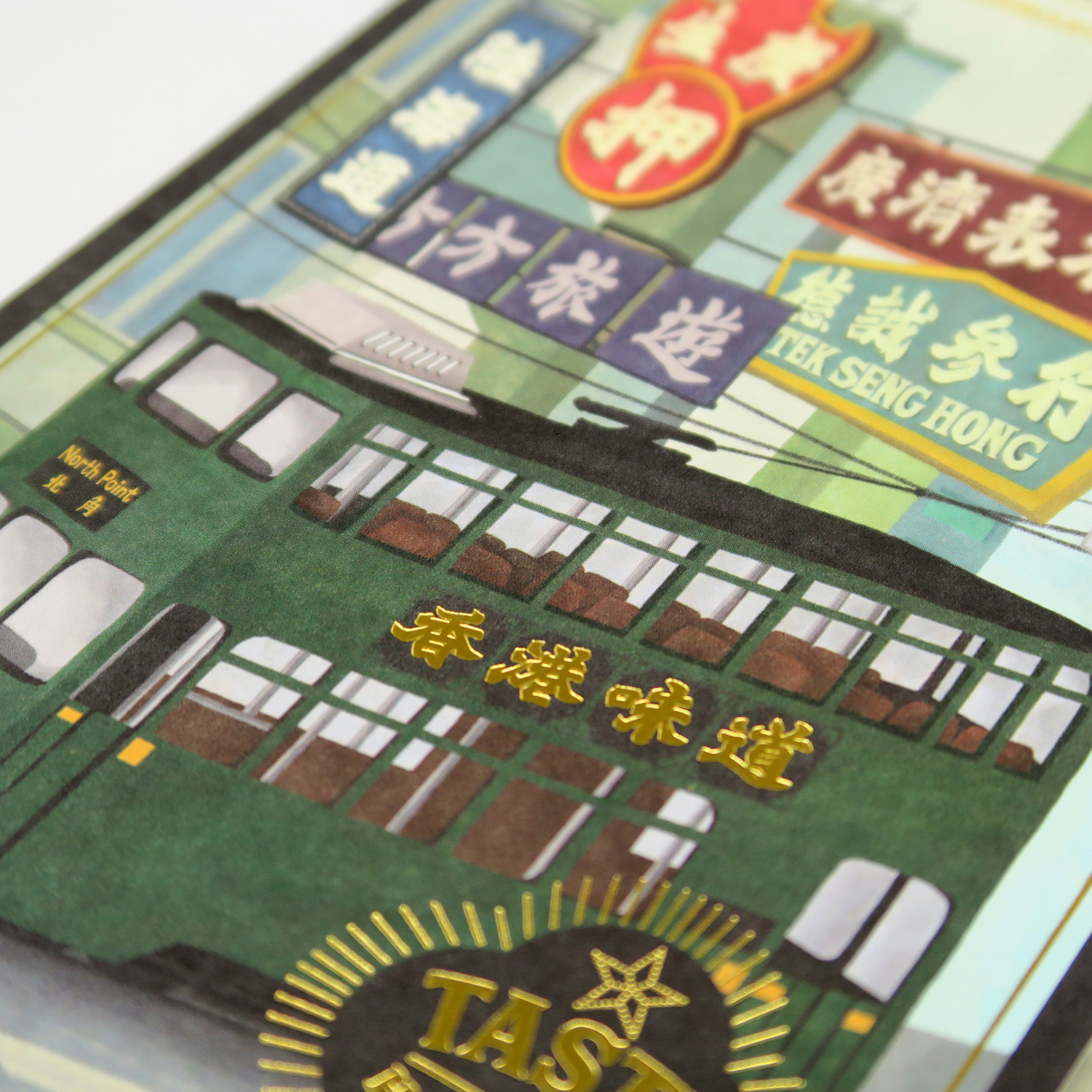 這款明信片特別採用燙金印刷及厚實的紙張增加質感,將帶您回到香港的街頭,感受叮叮車所帶來的獨特魅力和回憶。