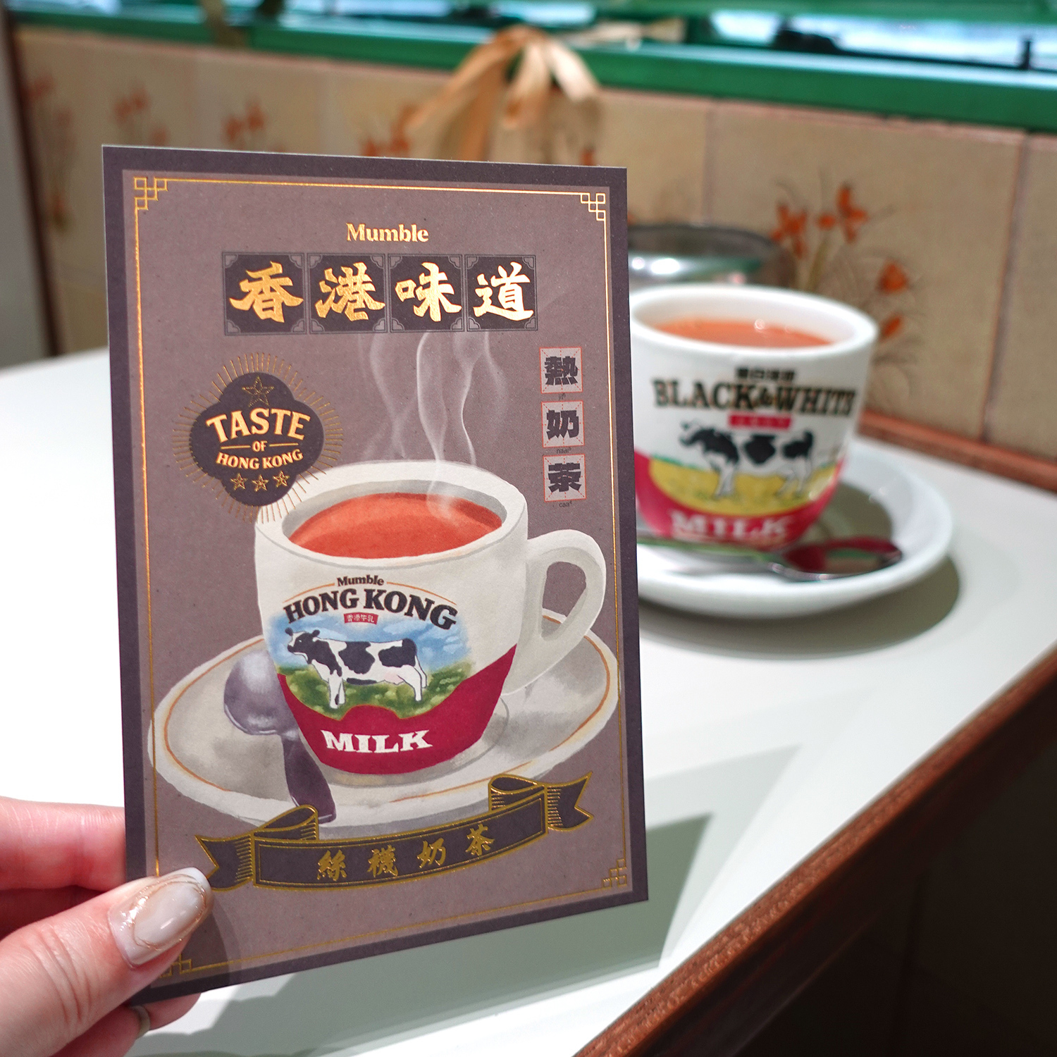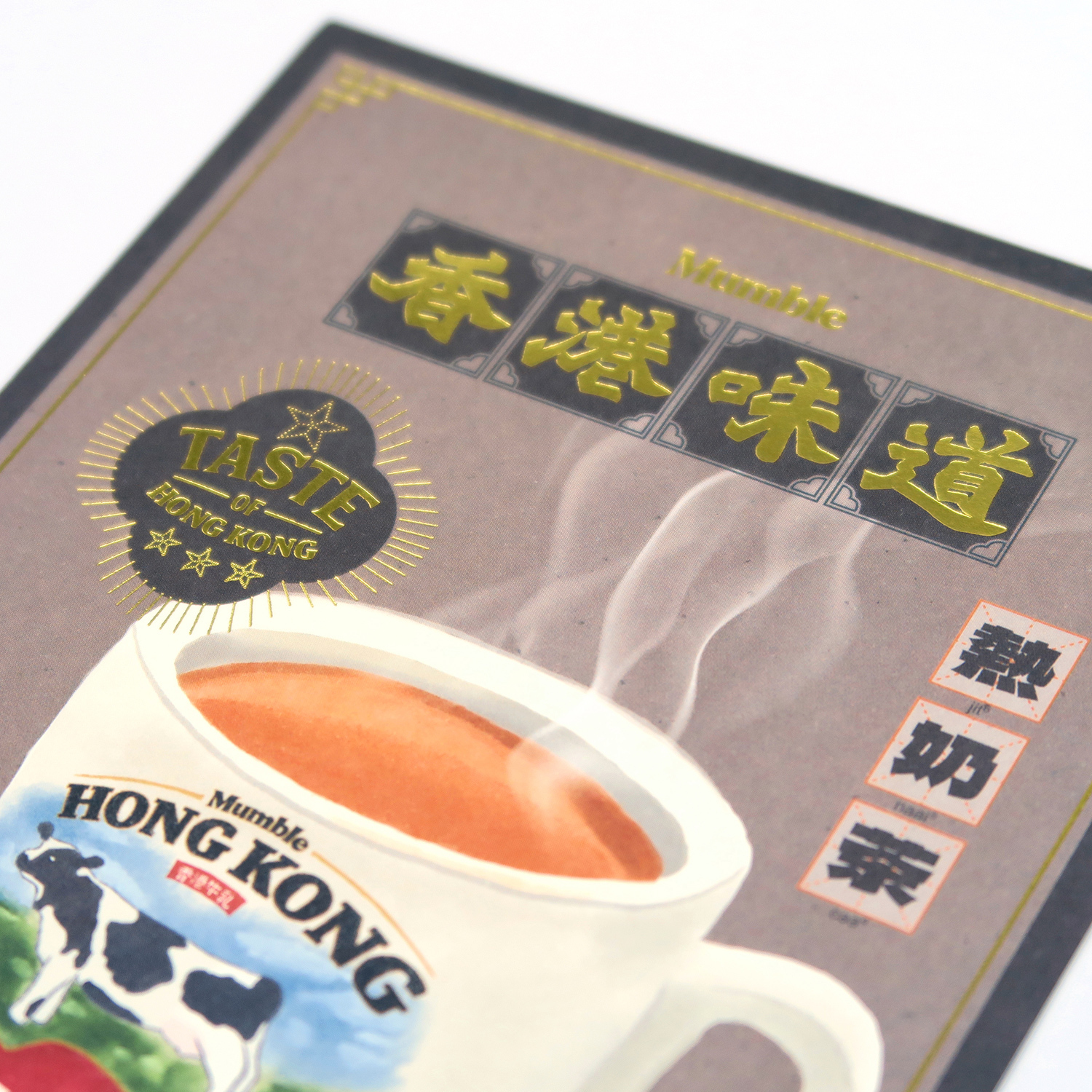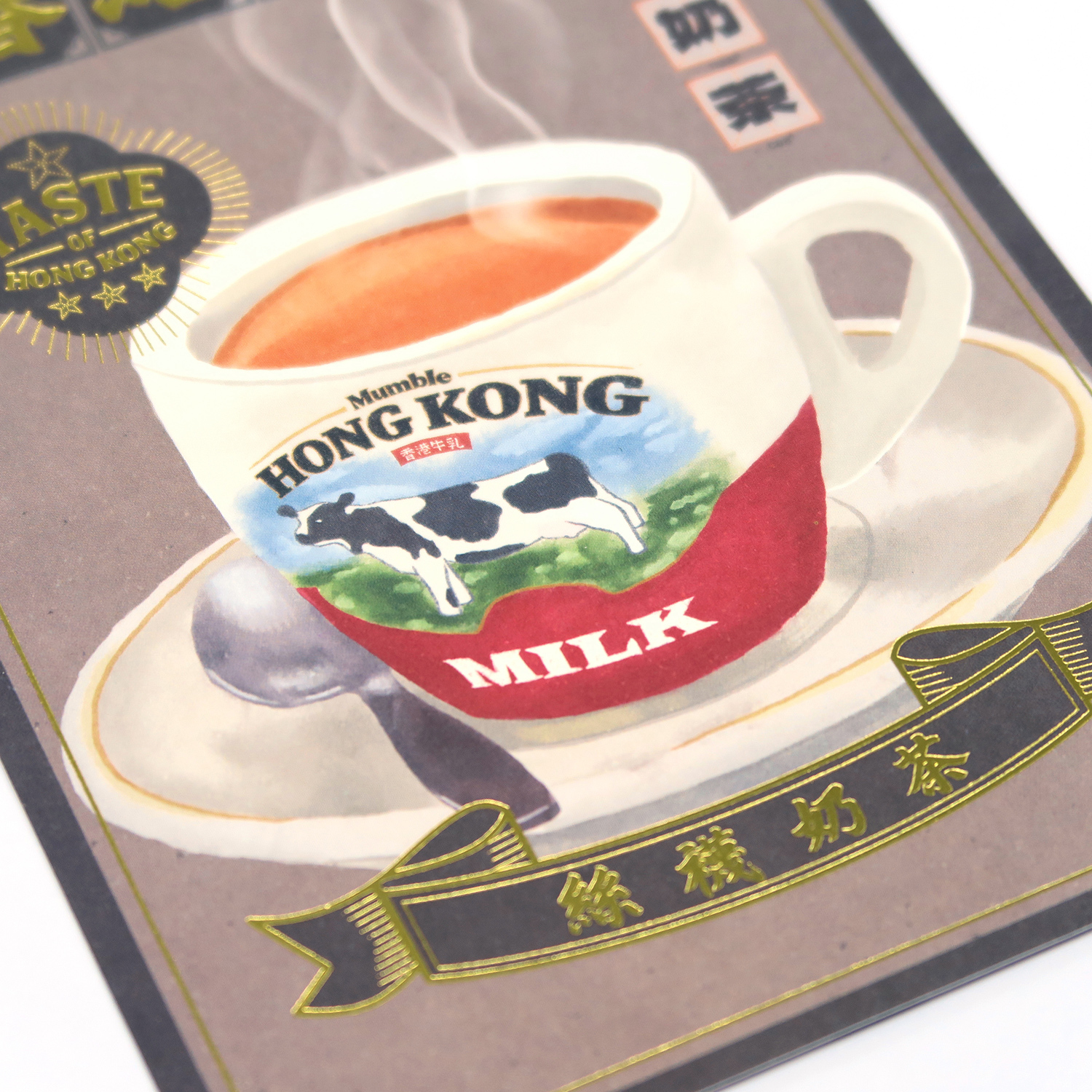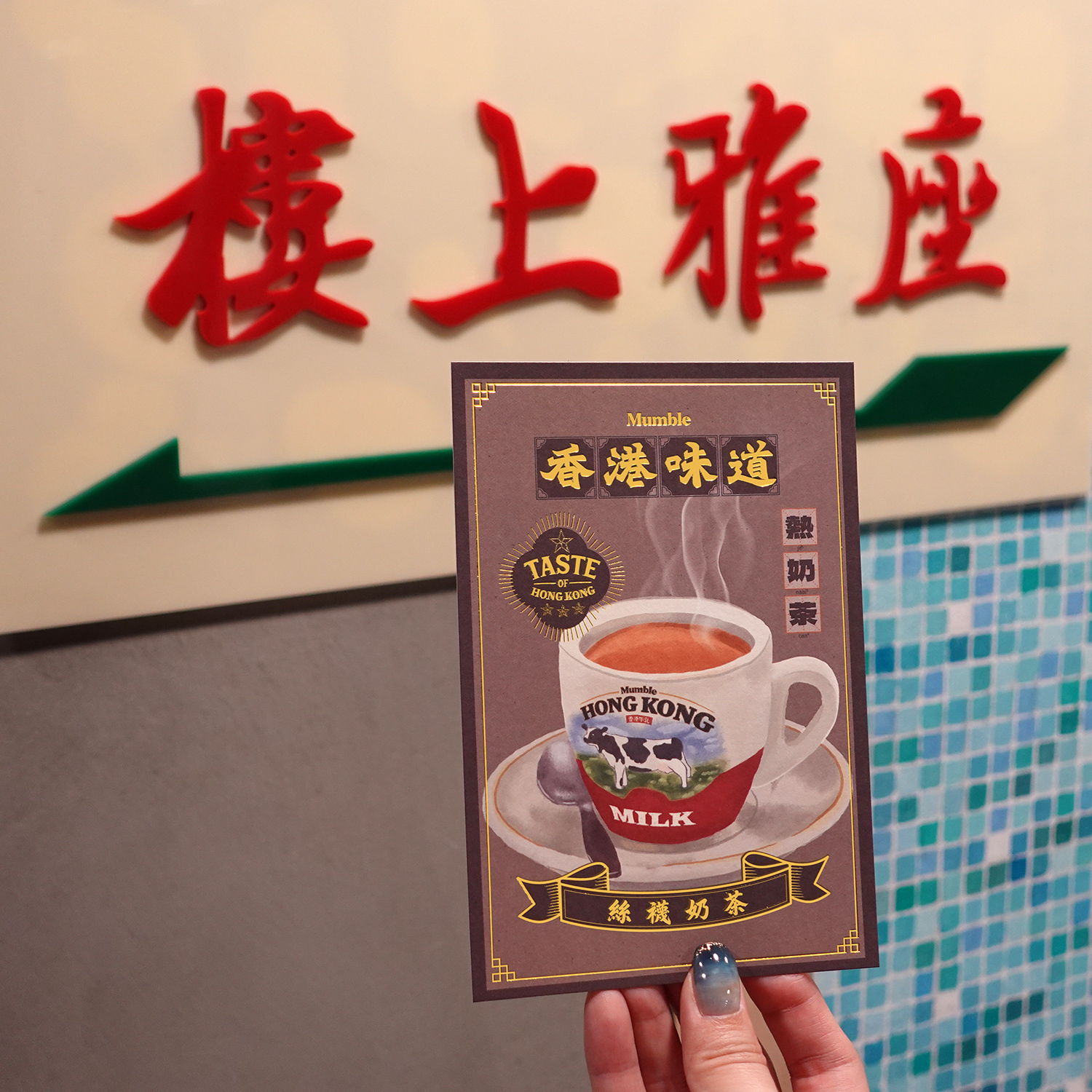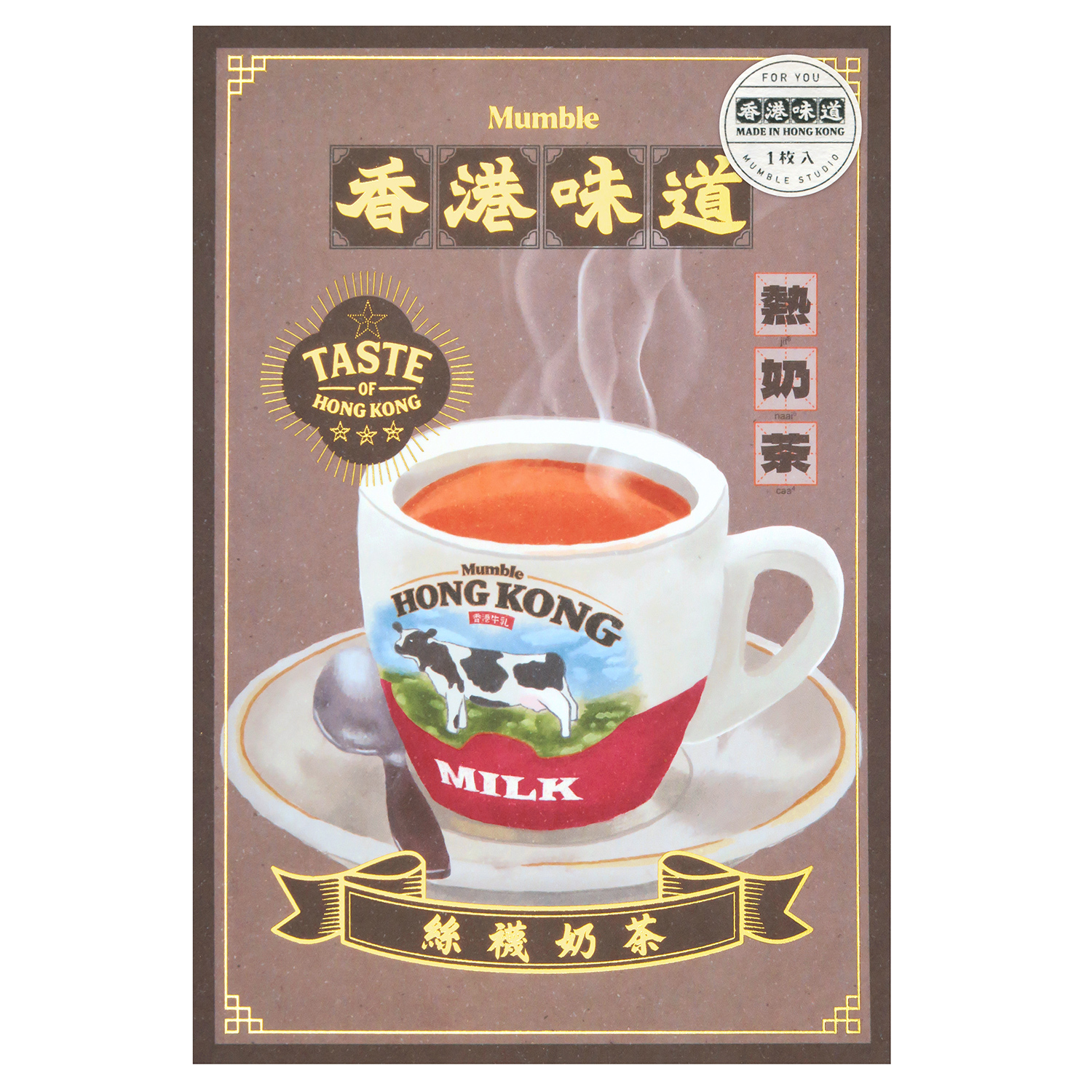 Mumble原創設計香港味道系列明信片,帶你品味地道的香港美食文化。這款明信片精美地呈現了一杯香港著名的絲襪奶茶,讓你彷彿能聞到茶香和牛奶的香氣,沉浸在香氣濃郁、口感順滑的絲襪奶茶中。這些明信片特別採用燙金印刷及厚實的紙張增加質感,將香港的獨特美食帶到你的手中,讓你能夠分享香港的味道和文化。不論是作為紀念品,送禮或自己珍藏,這些明信片都是展現香港獨特風味的完美選擇。商品尺寸:約14.8×10cm