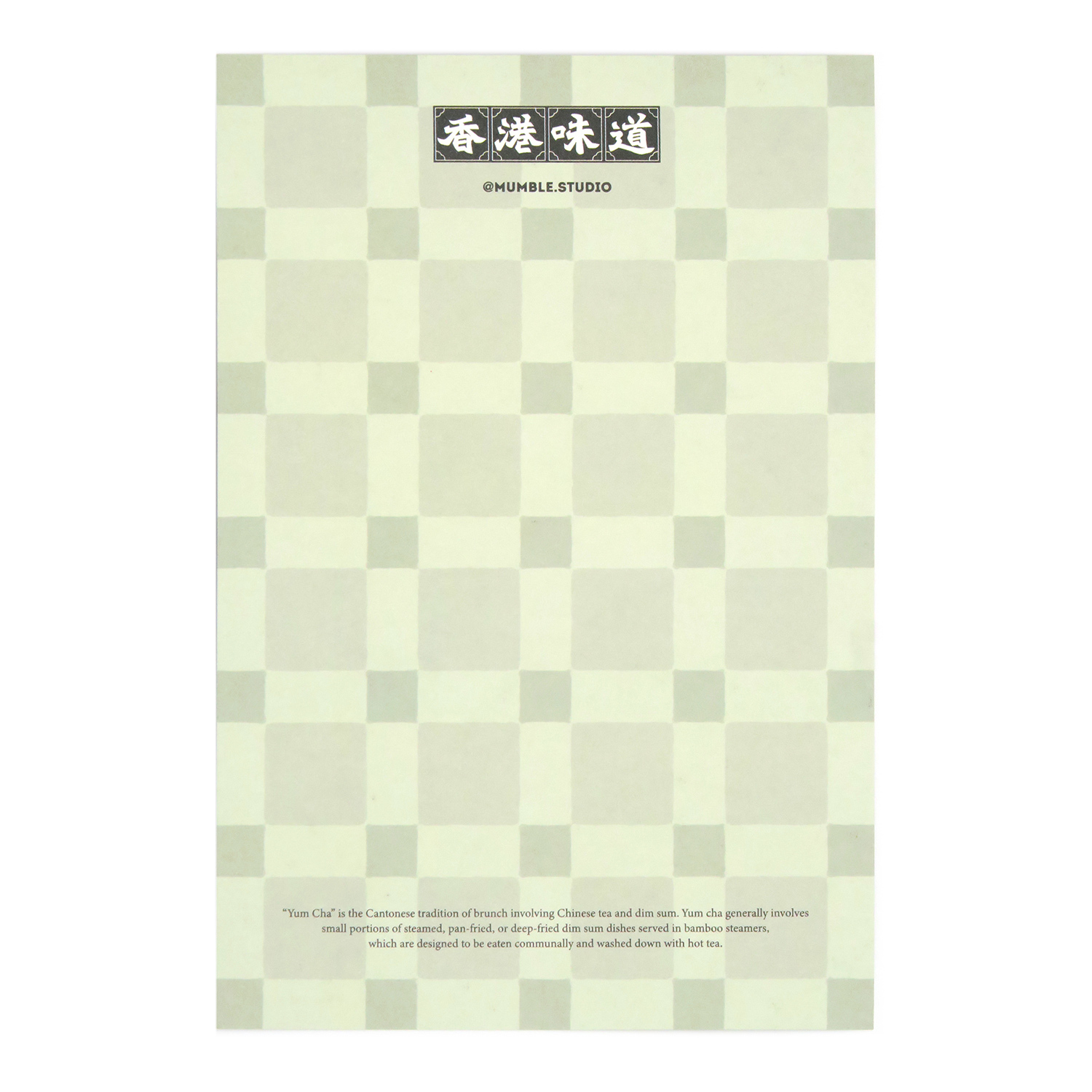 這款明信片展示了香港茶樓的經典場景,圖案呈現了茶樓中的桌椅和點心籃,充滿了港式茶樓的氛圍。