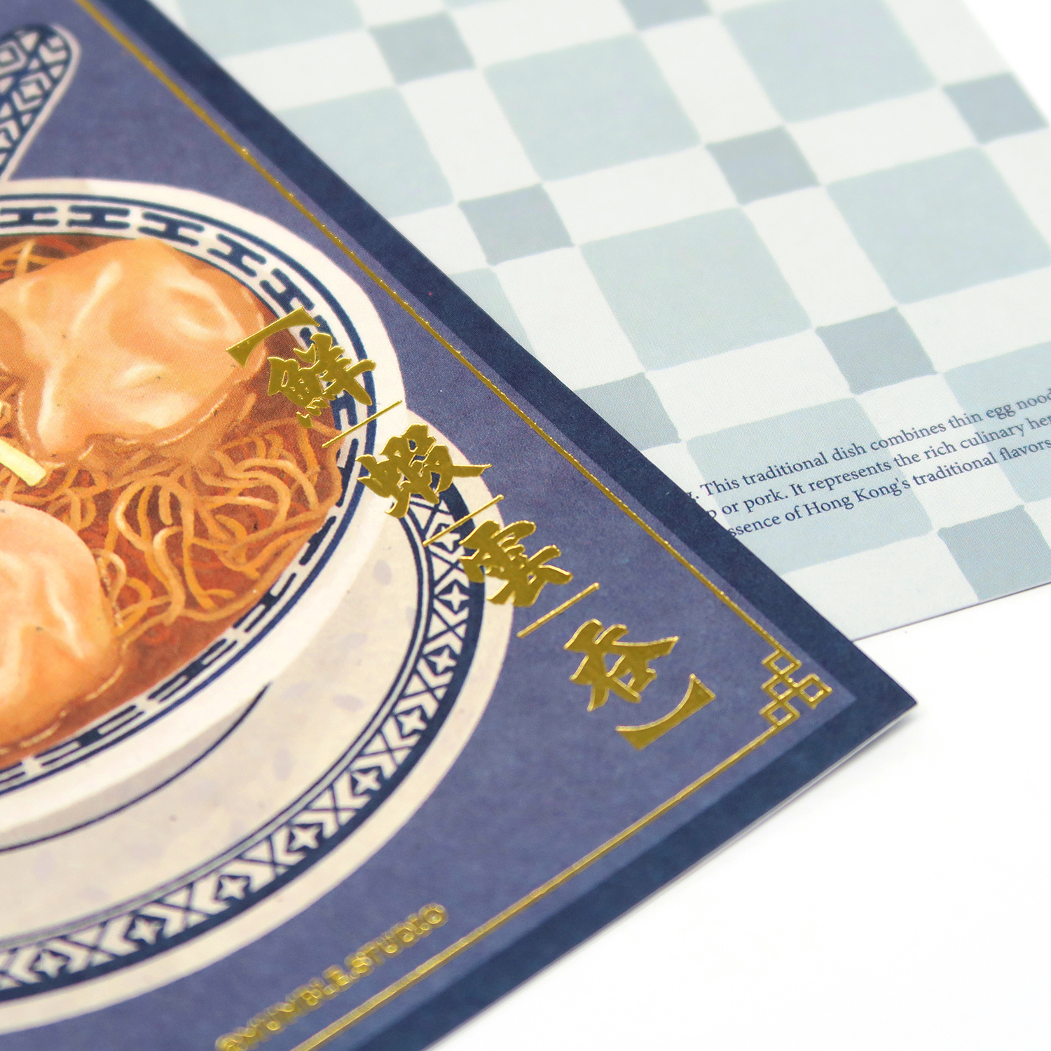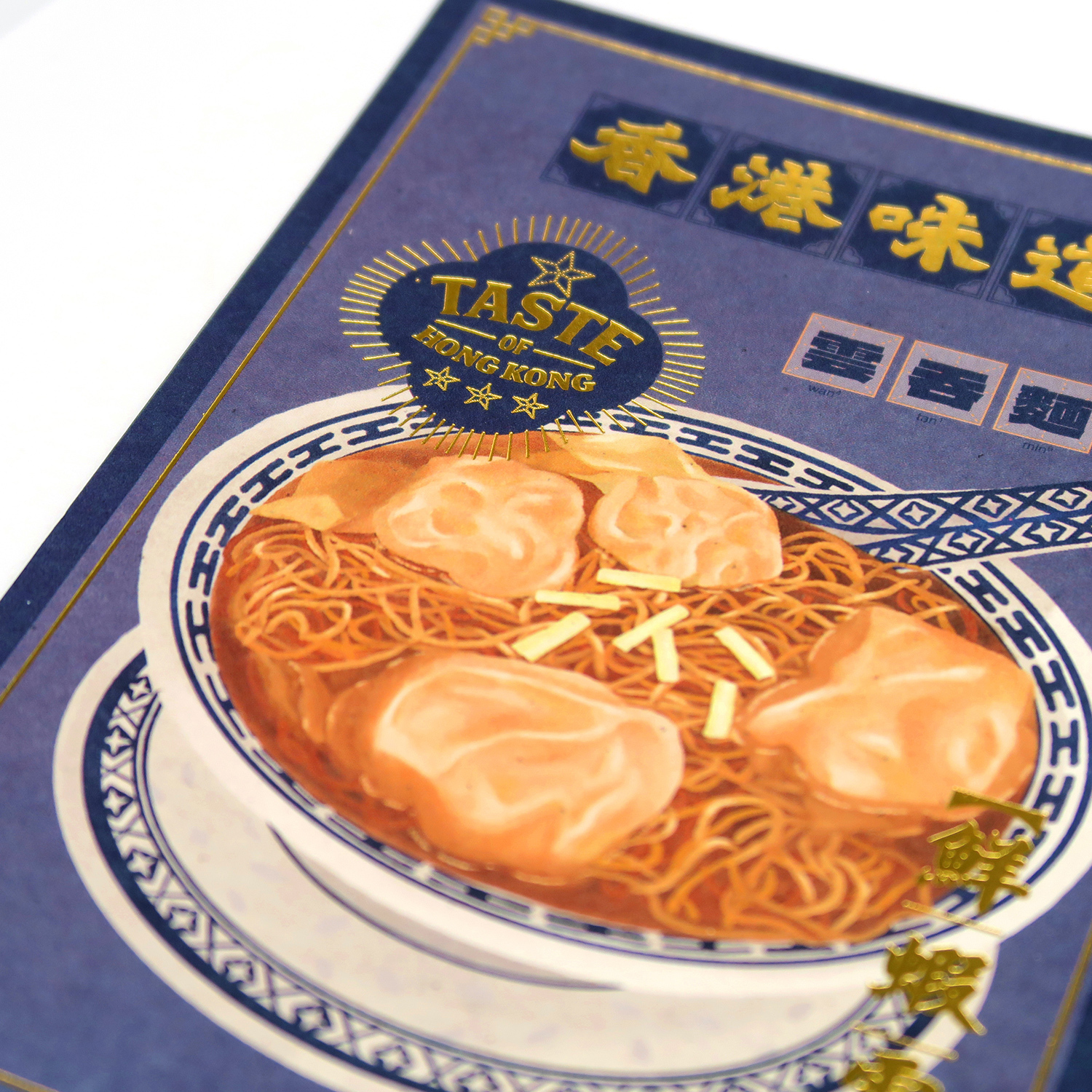 這款明信片展示了香港經典的雲吞麵,以其獨特的風味和傳統製作方法而聞名。