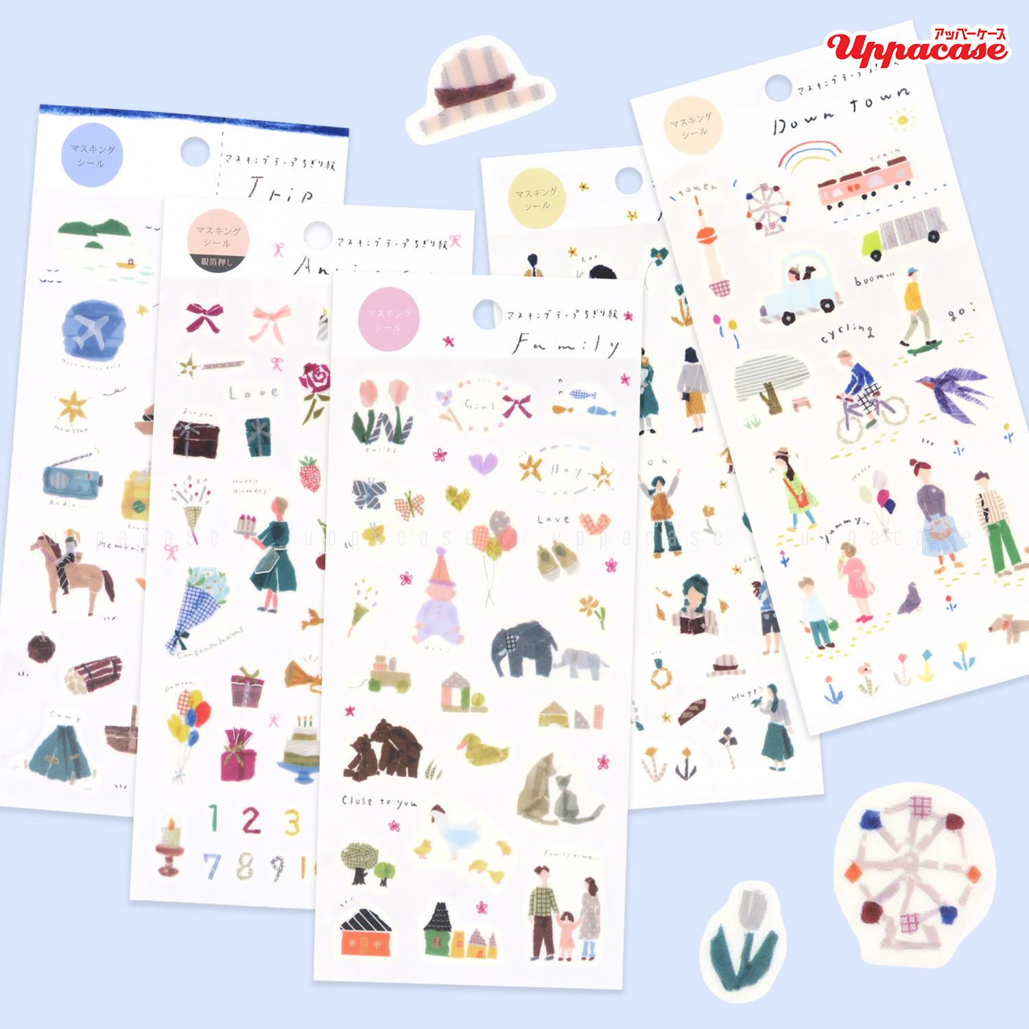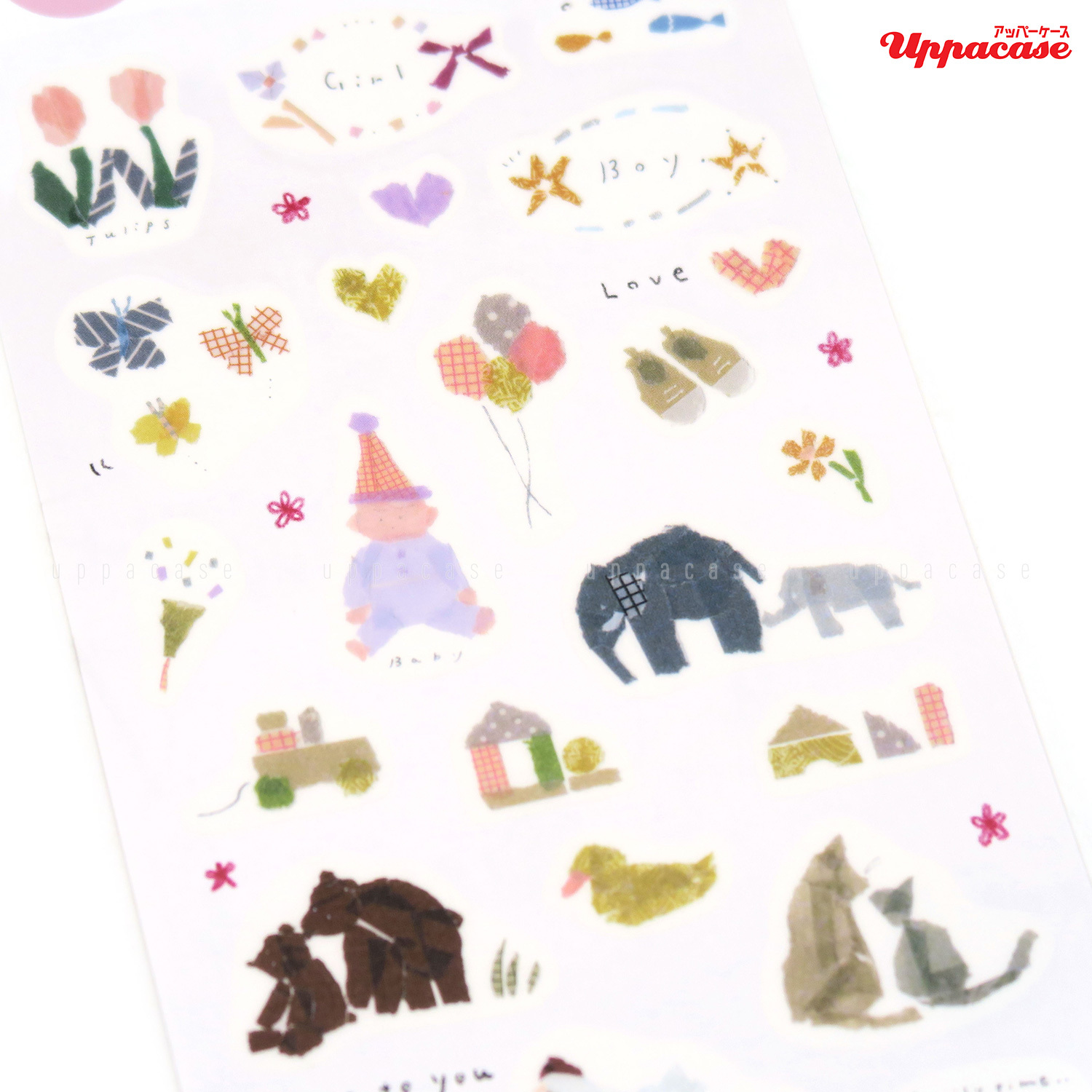 擅長以紙膠帶創作拼貼畫的日本插畫家田村美紀,這次把作品變成了和紙貼紙。「My favorite」是這次貼紙的主題,每張貼紙都有手工拼貼的感覺,充滿童心。貼在信紙、賀卡、手帳上都是很合適的,和紙素材亦容易撕下不留痕,也可以貼在手機或電腦上呢。商品尺寸:約20×9.5cm