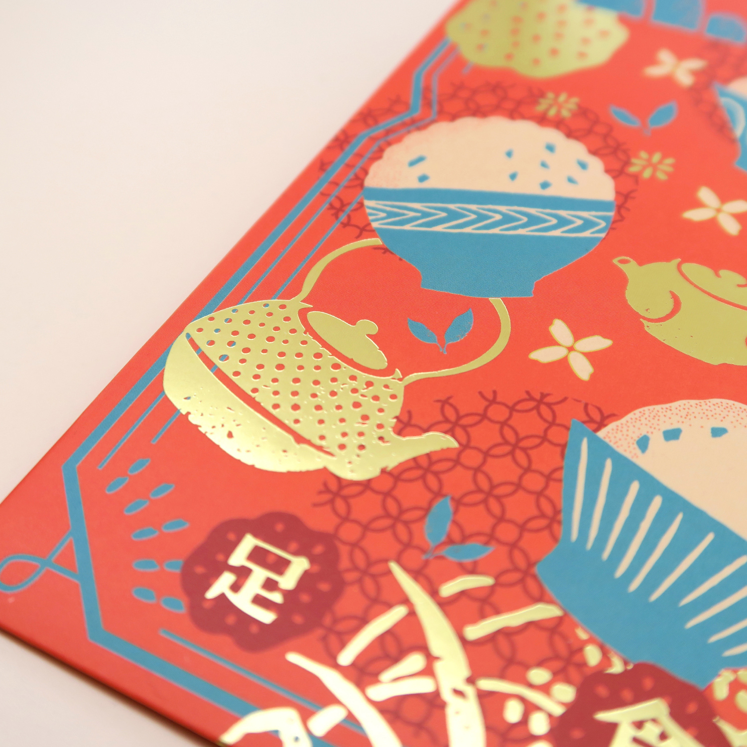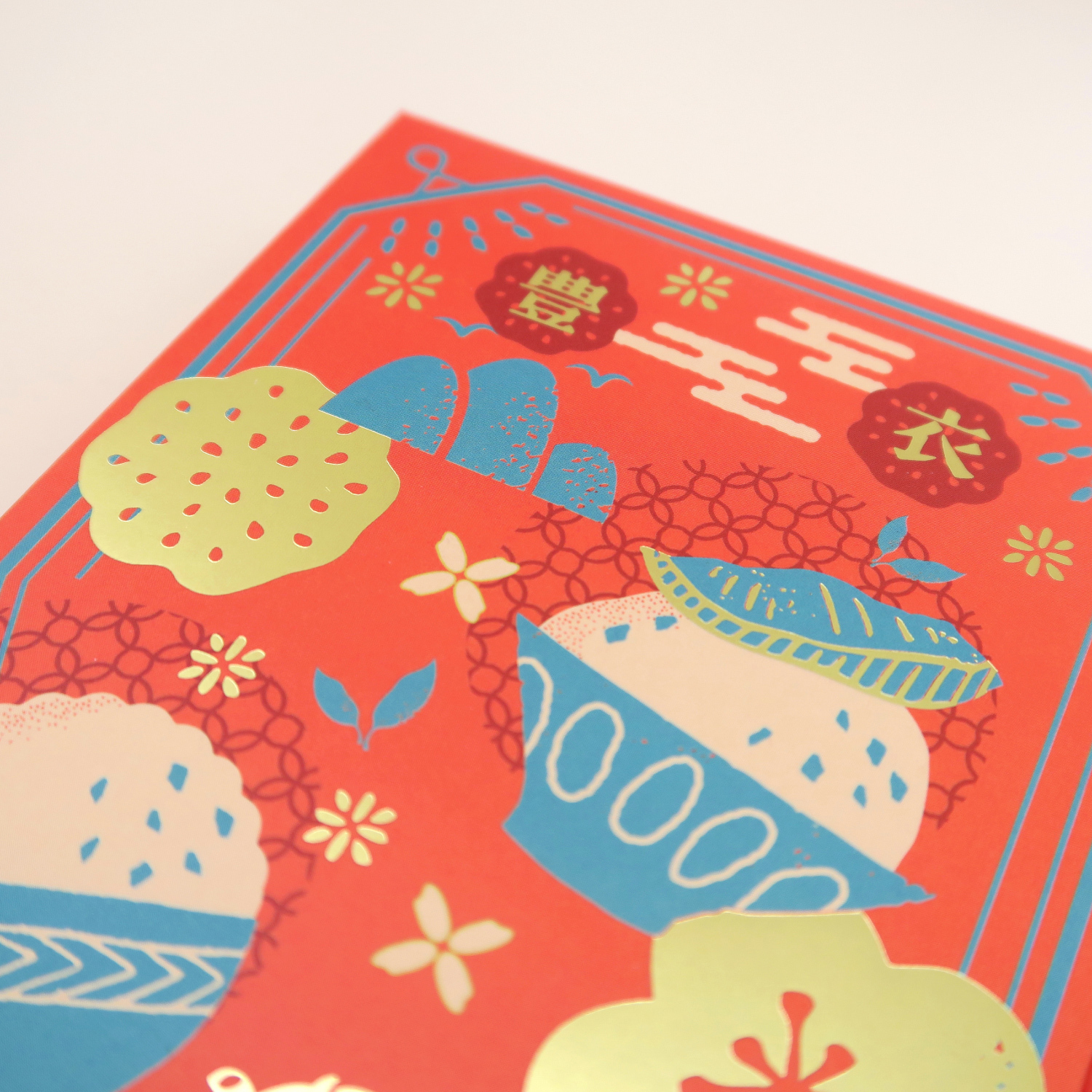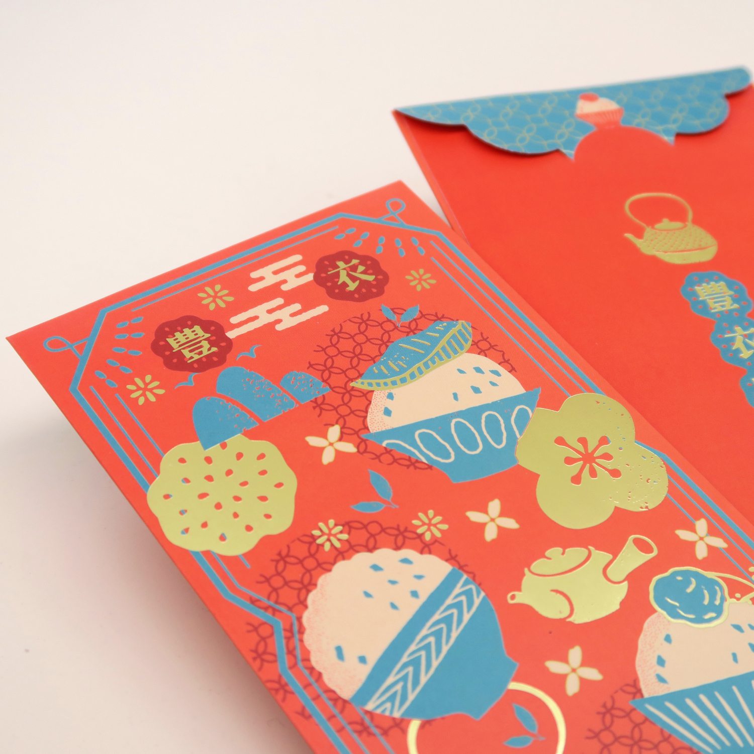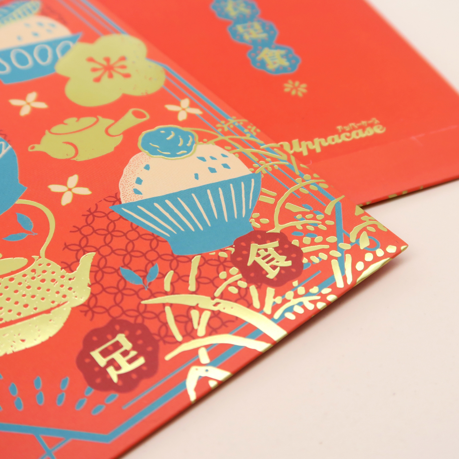 推薦我們UPPACASE精心設計的「豐衣足食」紅包!這款紅包以橘紅色為主色調,設計靈感來自與親朋歡聚時的豐盛宴席,體現了愉悅的節慶氛圍。米粒的圖案象徵著飽滿和豐盛,丼飯的形象代表著食物的滿足和美味,而茶壺象徵著和諧與共享。「豐衣足食」紅包選用高品質紙張製成,確保觸感奢華絲滑,為您的贈禮體驗增添一絲精緻感。現在就訂購您的「豐衣足食」紅包,為所有收到紅包的人帶來喜悅和好運,一同迎接幸福和美好的一年!商品尺寸:9×16cm內容:每包單款10枚入