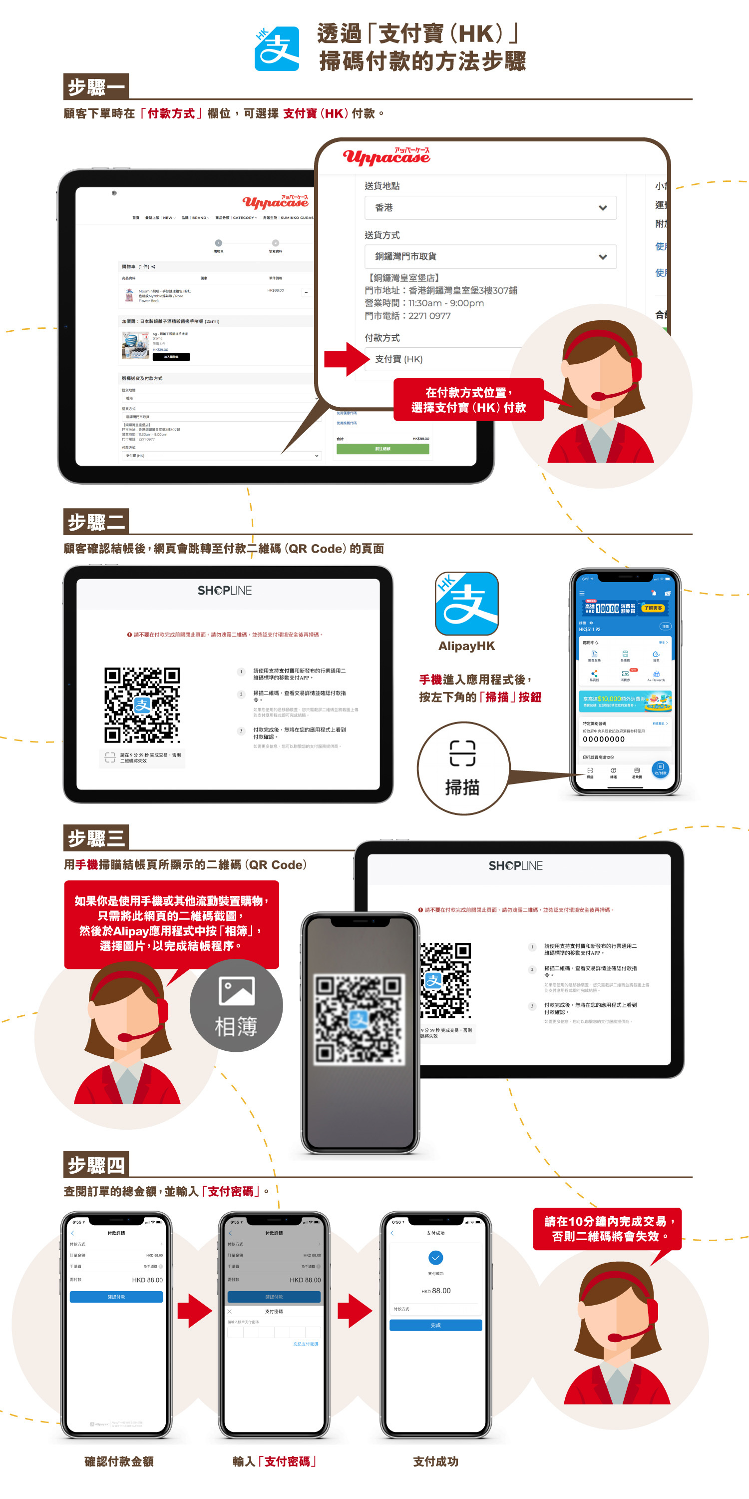 買家可以選擇支付寶付款方式,一經網頁完成支付,訂單將即時確認,可避免於等候付款期間缺貨的情況發生。